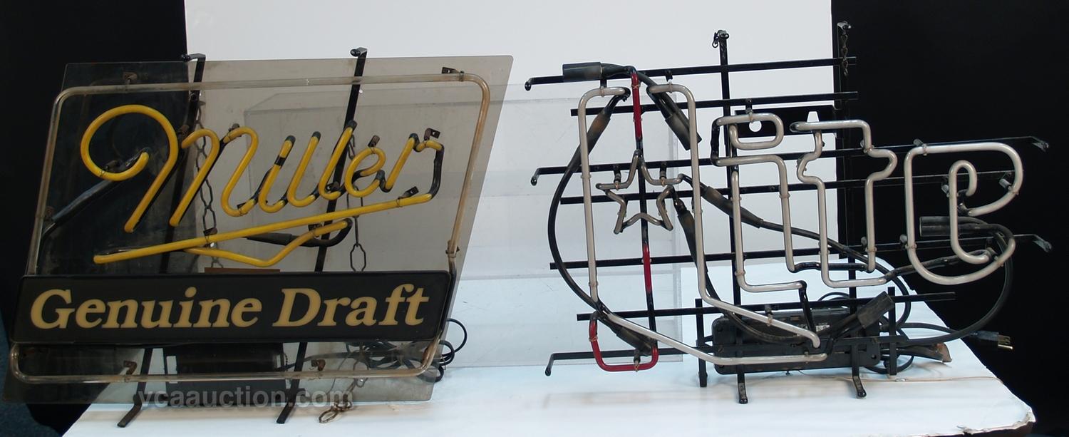 Lot Of 2 Beer Neon Signs: 1 - Miller Genuine Draft - 23" x 19" & 1 - Lite Beer Lone Star Boot - 25" x 19"