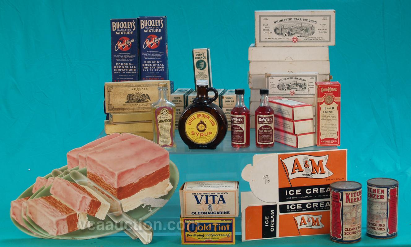 Lot Of 2 Boxes Filled w/ Empty & Full Country Store Boxes & Ice Cream Items