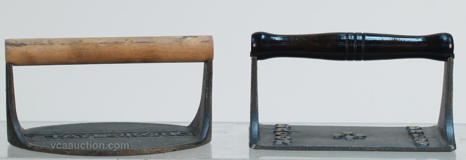 Lot Of 2 Cast-Iron Wood Handle Food Presses: 1 - bacon & 1 - beef