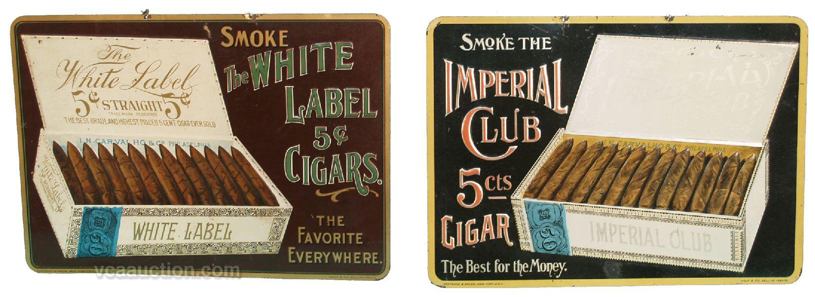 Lot Of 2 Cigar Embossed Tin Signs: 1 - White Lable & 1 - Imperial Club - each 14" x 10"