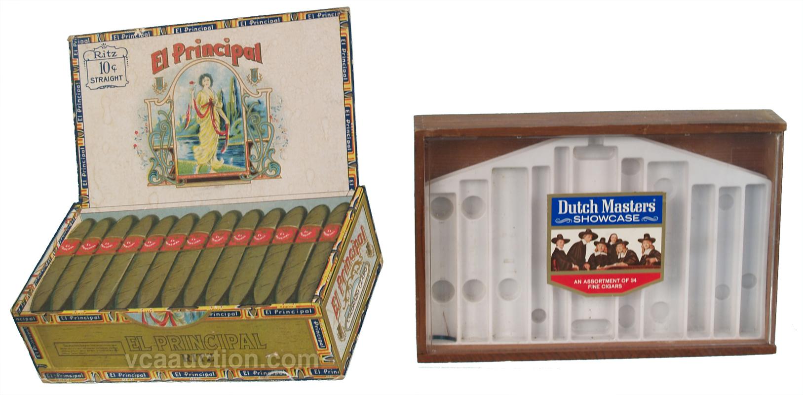 Lot Of 2 Cigar Items: Dutch Master's Cigar Box Showcase, and El Principal Cigar cardboard easel countertop display