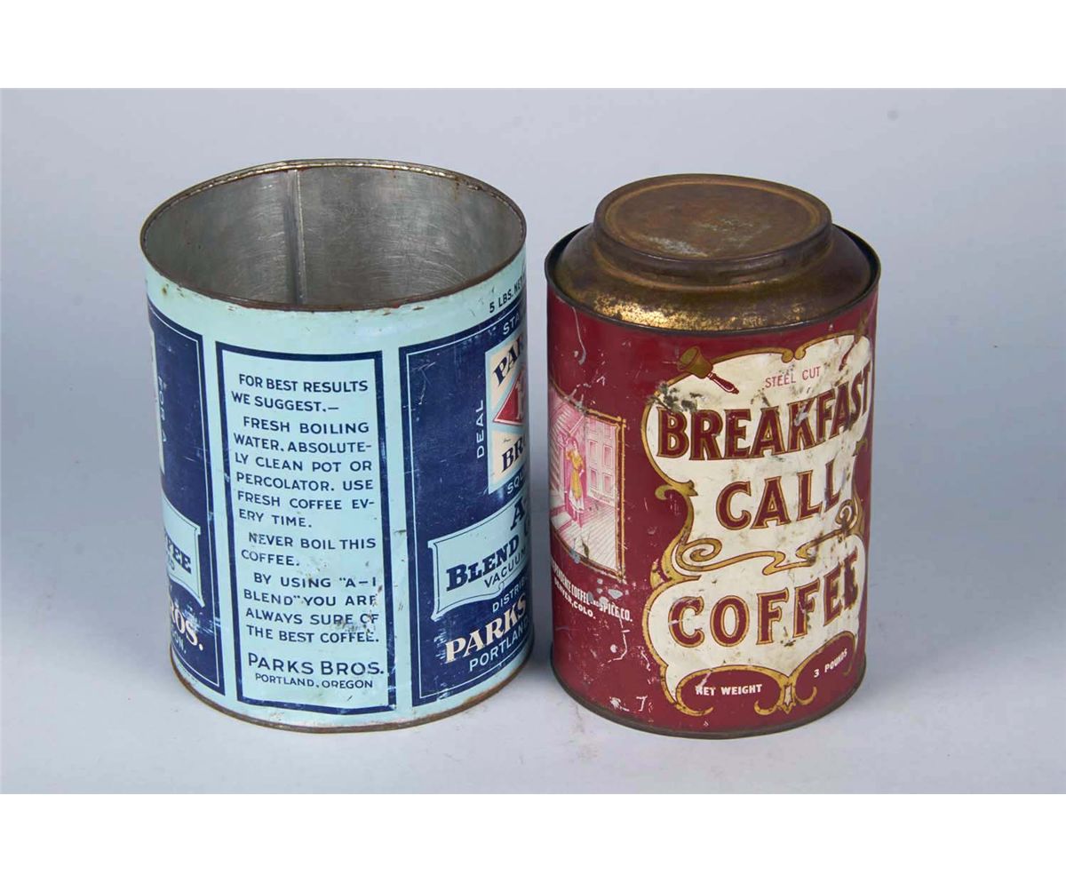 Including 1 - Breakfast Call Coffee and 1 - Parks Bros. A -1 Blend Coffee. Condition (Fair). Size Largest 9" x 6"