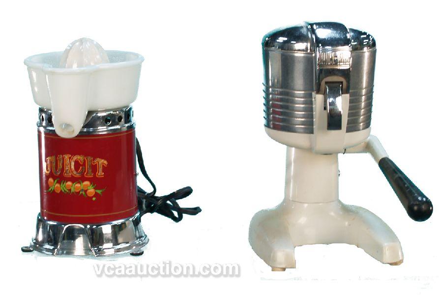 Lot Of 2 Countertop Juicer Machines: 1 - hand crank "Juice King" & 1 - electric "Juicit" machine