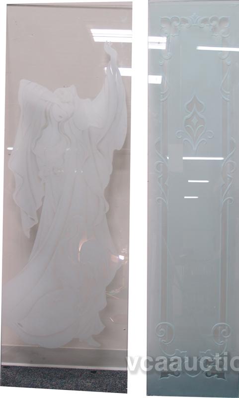 Lot Of 2 Decorative Etched Glass Panels - 66" x 22" & 67" x 15"