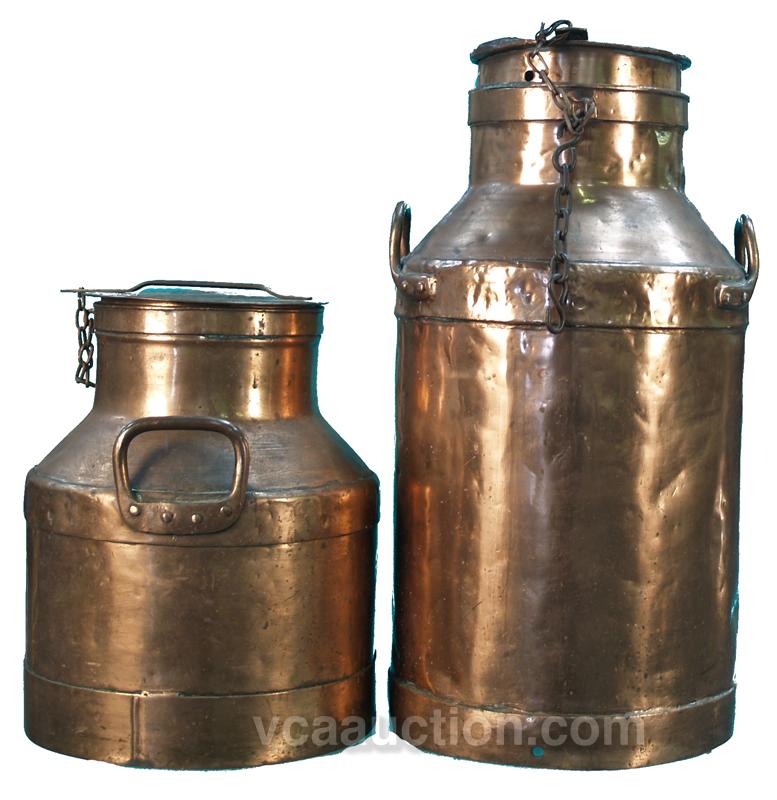 Lot Of 2 Early Copper Milk Cans:  1 - 17" tall & 1 - 28" tall