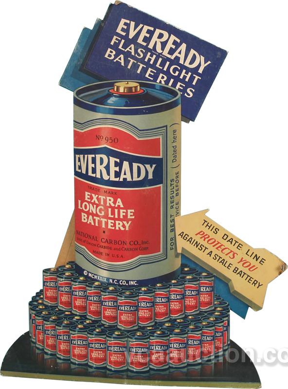 Lot Of 2 Early Country Store EverReady Items:  1 - die-cut cardboard easel back display - 17" x 24" & 1 - Syphon Filter in original box