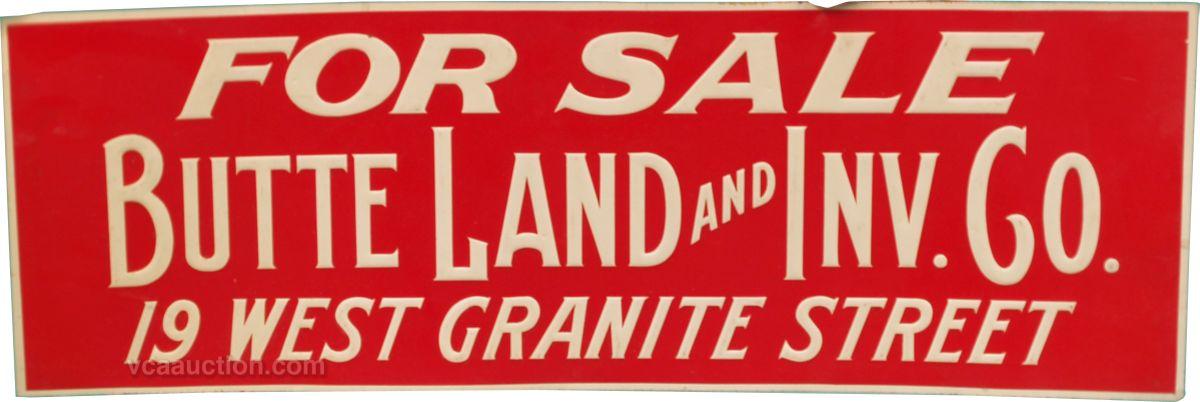 Lot Of 2 Embossed Tin Signs: For Sale Butte Land And Inv. Co. 19 West Granite Street - 28" x 10" and Copper Clad Ranges - 28" x 10"