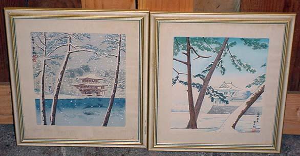 Lot Of 2 Framed Japanese Prints - Some Water Damage To 1. Approx. 14" X 15.5" Each