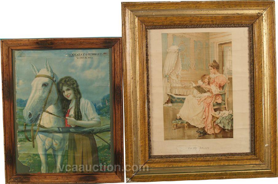 Lot Of 2 Framed Prints: 1 - old calendar art Hockaday & Roberts Waukomis, OKLA. - 19" x 23" & 1 - "Fairy Tales" Fairy Soap Print c1897 - 24" x 28"