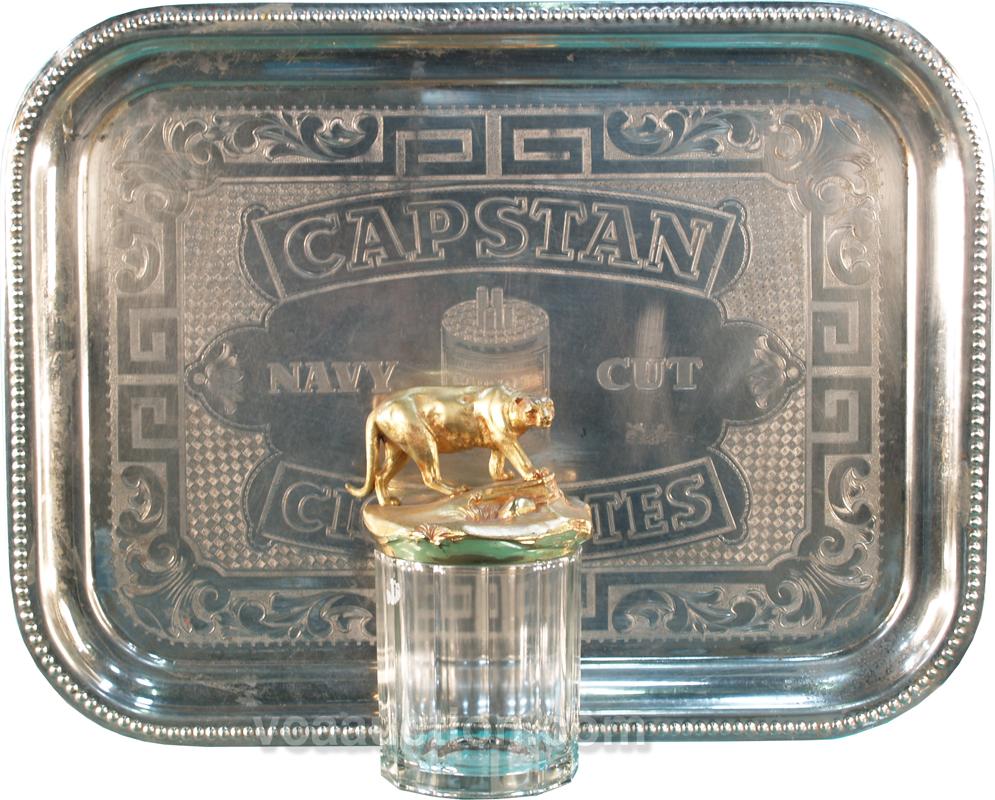 Lot Of 2 Items: Glass Cigar Jar w/ Top & Capstan Cigarette Advertising Tray - 20" x 15"
