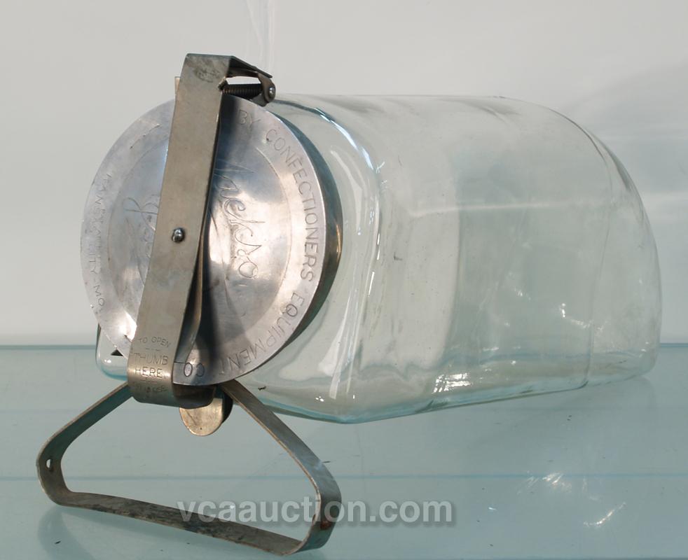 Lot Of 2 Items: 1 - floor model scale mirror c1940's N.O.S. (mirror only) - 11-1/2" x 13-1/2" & 1 - old country store countertop glass store jar w/ metal lid "Jackson Jar" - 15" long