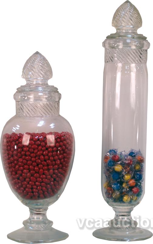 Lot Of 2 Large Sized Glass Candy Jars w/ Lids: 1 - 19" tall & 1 - 16" tall