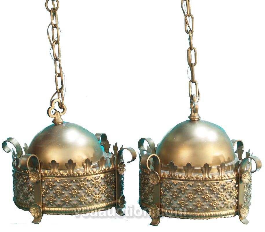 Lot Of 2 Matching Hanging Light Fixtures From An Old Chicago Church