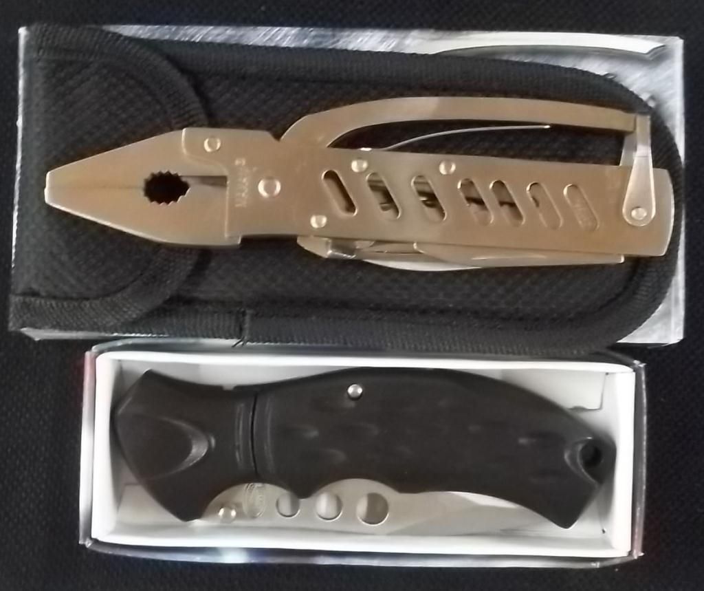 Stainless Steel, & Nylon Sheath. Tactical Knife W/Satin 5" Blade & Black Plastic Handle