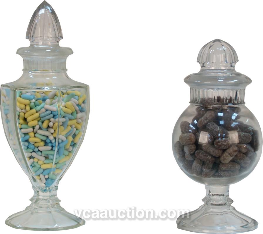 Lot Of 2 Medium Sized Glass Candy Jars w/ Lids: 1 - 11" tall & 1 - 13" tall