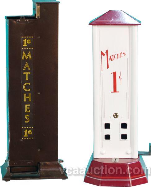 Lot Of 2 Metal Coin-Op Match Dispensing Machines,