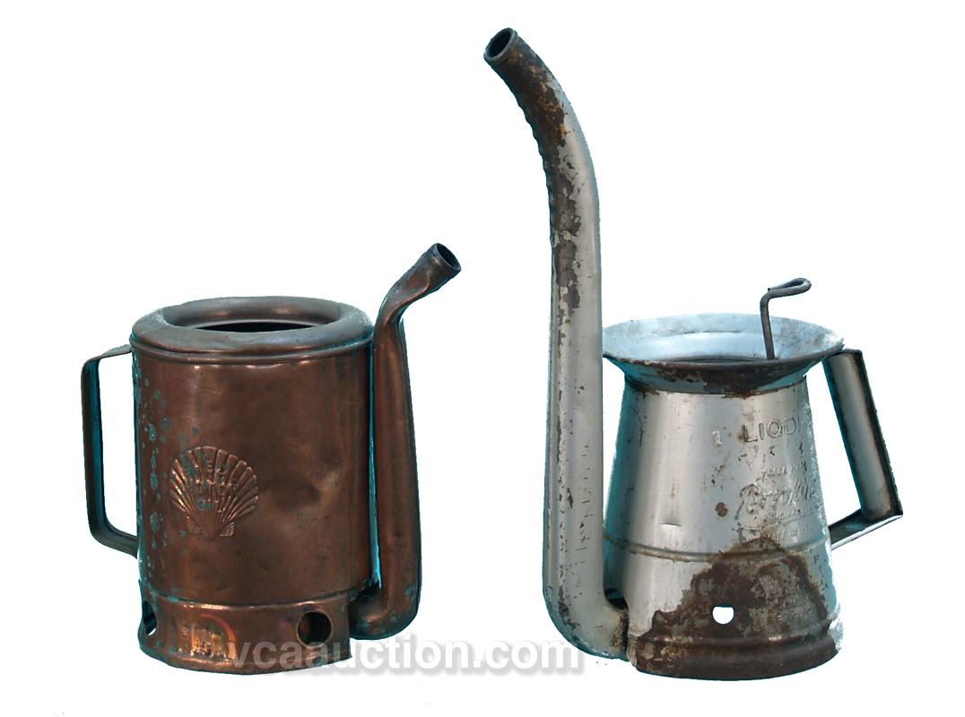 Lot Of 2 Old Metal Oil Dispensing Spigot Cans (1 - Shell Motor Oil)