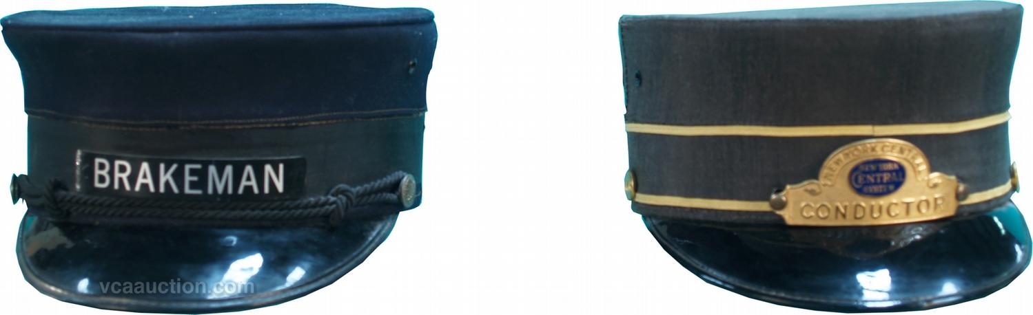 Lot Of 2 Old Subway System Hats: 1 - Conductor For New York Central System size 6-7/8" & 1 - "Brakeman" size 7-3/8", both in great condition