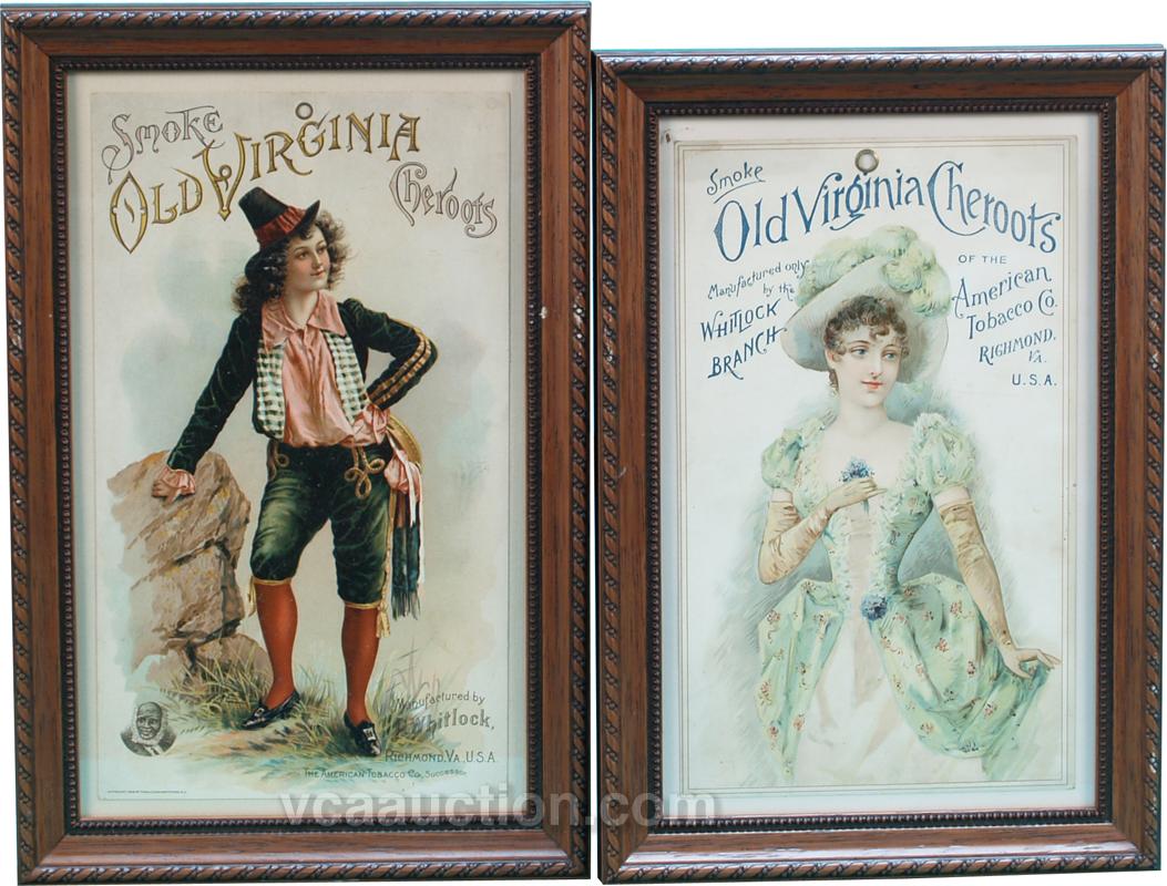 Lot Of 2 Old Virginia Cheroots Tobacco Cardboard Cards, American Tobacco Company Richmond, VA. USA. framed - each 9" x 13"