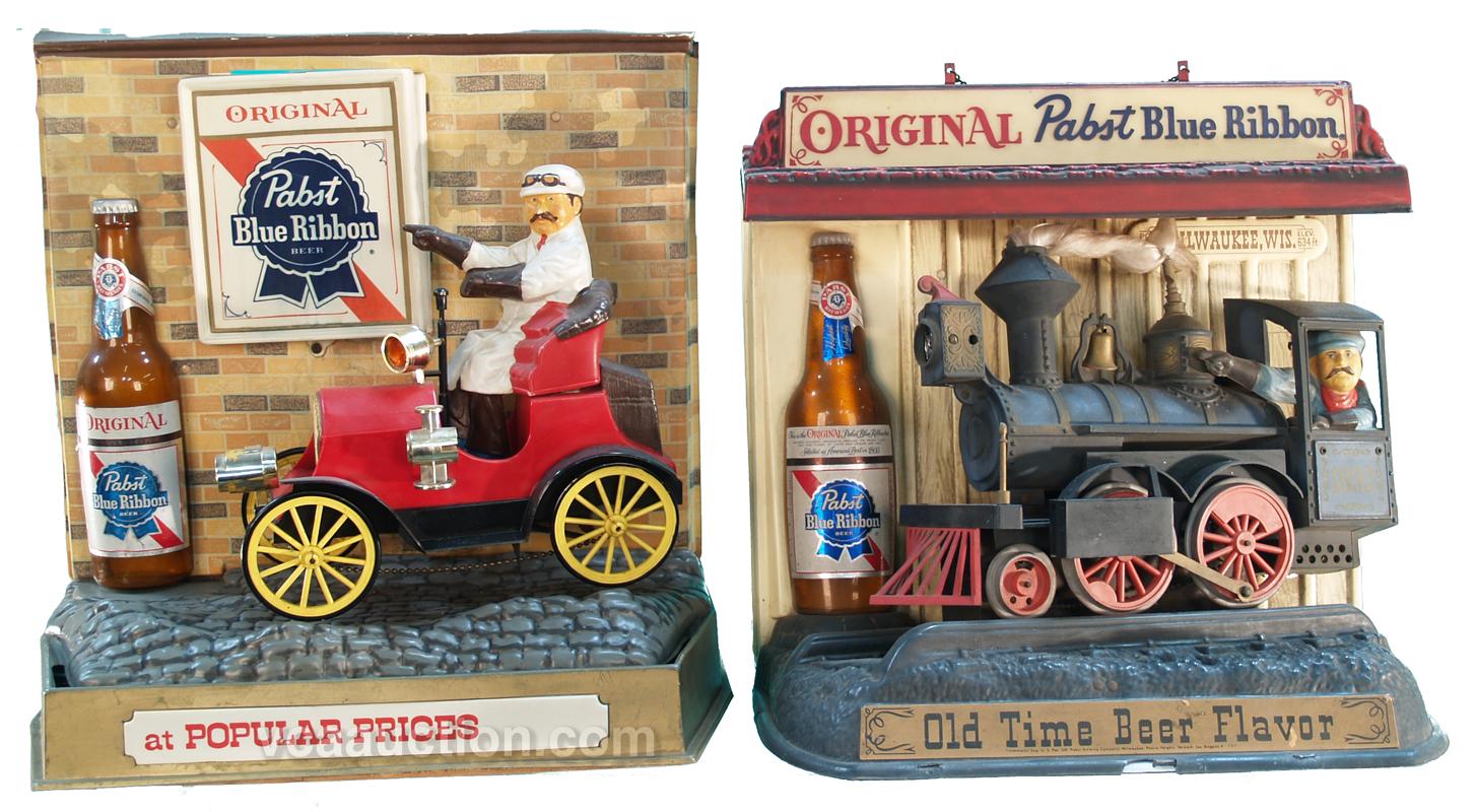 Lot Of 2 Pabst Blue Ribbon Beer Bar Displays: Train & Antique Car