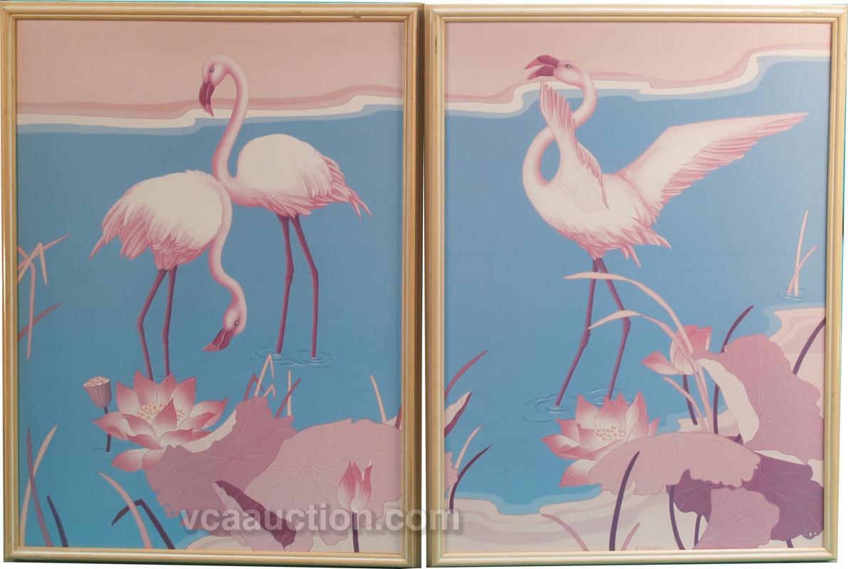 Lot Of 2: Pair Of Flamingo Hilton Framed Flamingo Prints - 20" x 28"