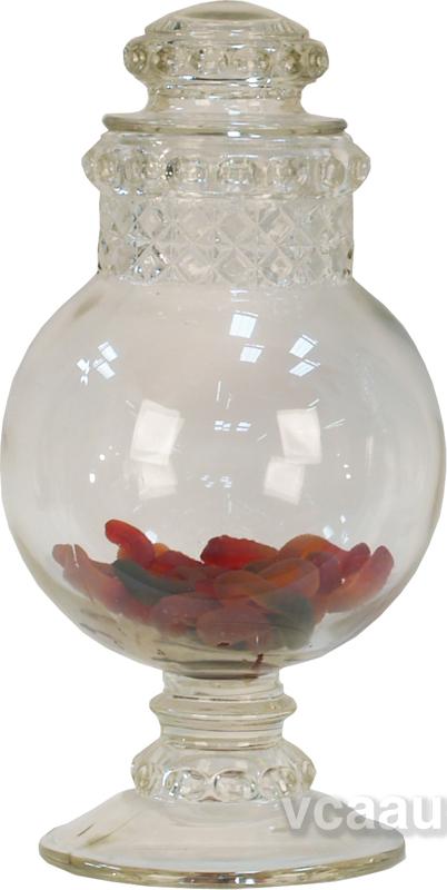 Lot Of 2, Pair Of Medium Sized Glass Candy Jars w/ Lids - each 12" tall