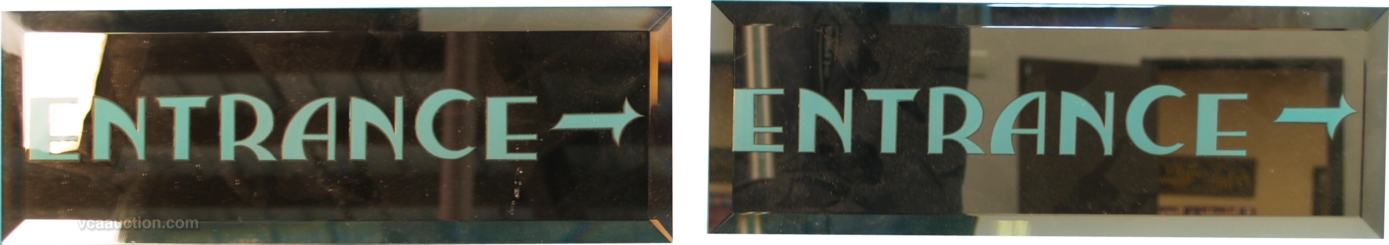 Lot Of 2 Peach Colored Tinted Beveled Mirror "Entrance" Signs - Each 16" x 5"