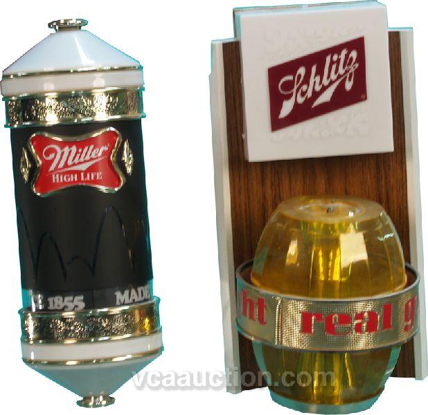 Lot Of 2 Plastic Light-Up Motion Beer Signs: 1 - Miller High Life & 1 - Schlitz Beer (both work)