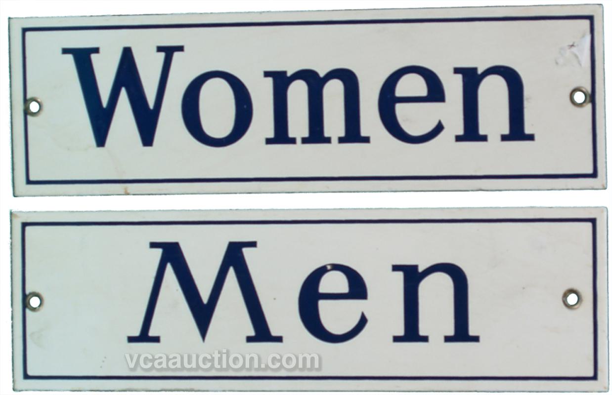 Lot Of 2 Porcelain Signs: 1 "Men" & 1 "Women" - Each 10" x 3"