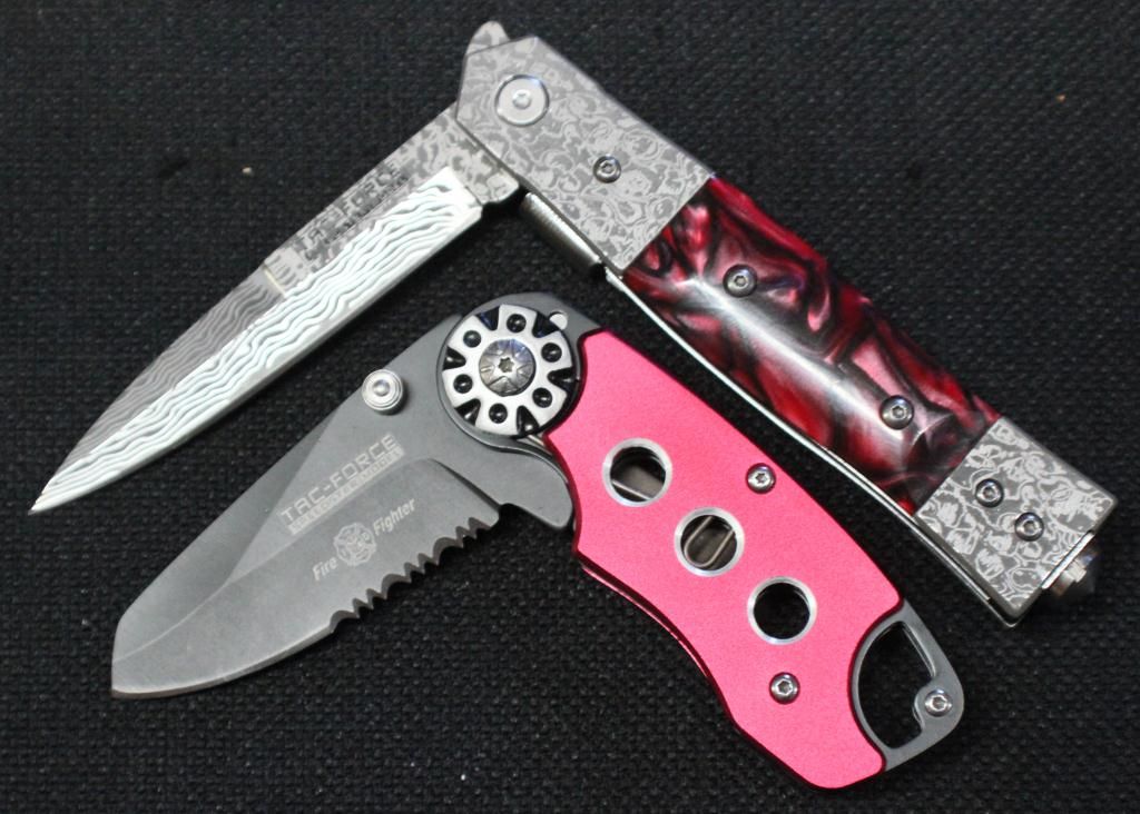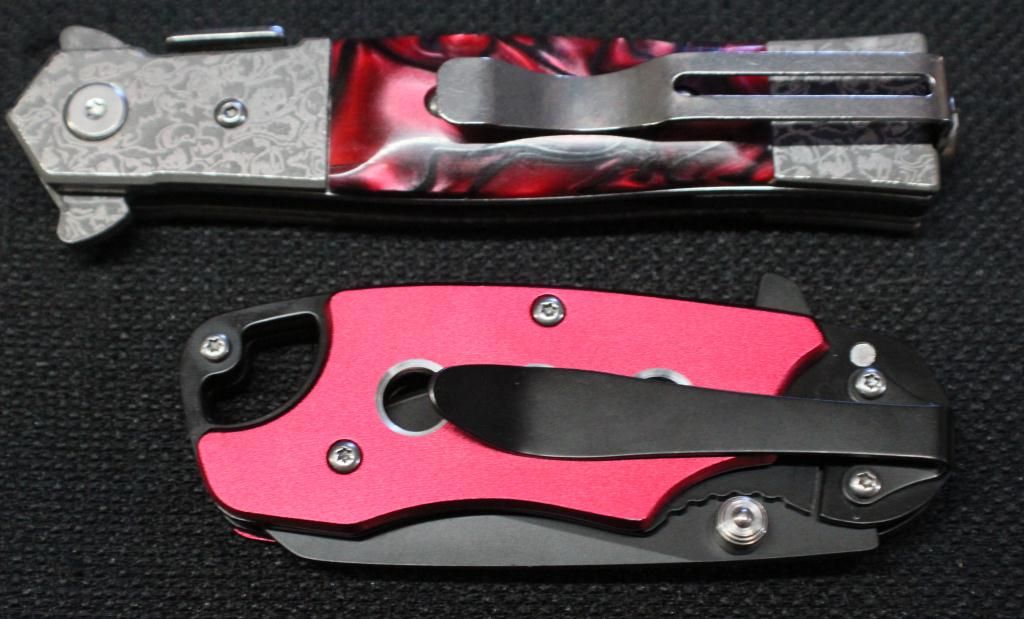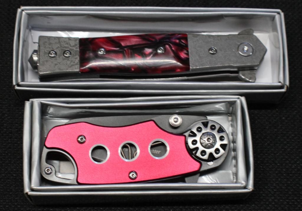 Automatic" W/Half Serrated All Black Stainless Steel Blade, Durable Aluminum Handle & Pocket Clip. Gentlemen's Knife 3.5" Black Stainless Steel Blade Stimulated Mother of Pearl Red Handle & Pocket Clip