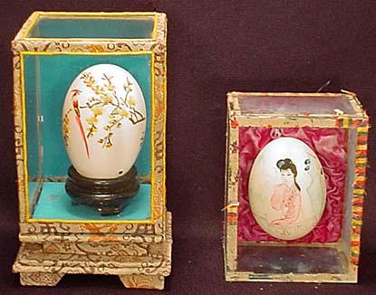 Lot Of 2 Vintage Hand Painted Eggs In Displays