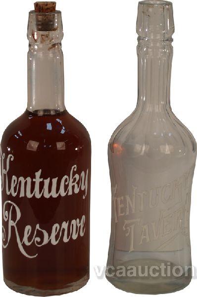 Lot Of 2 White Enamel Lettering Glass Back Bar Bottles: 1 - Kentucky Tavern & 1 - Kentucky Reserve