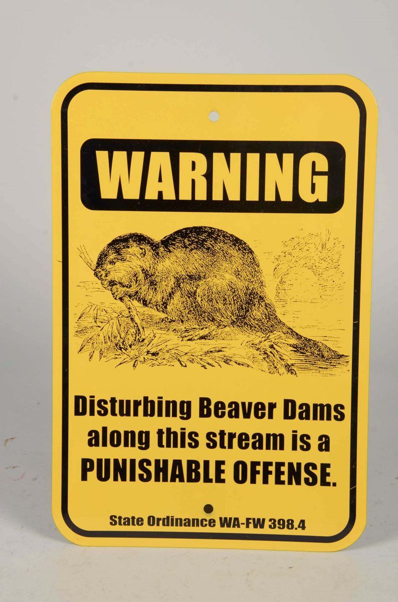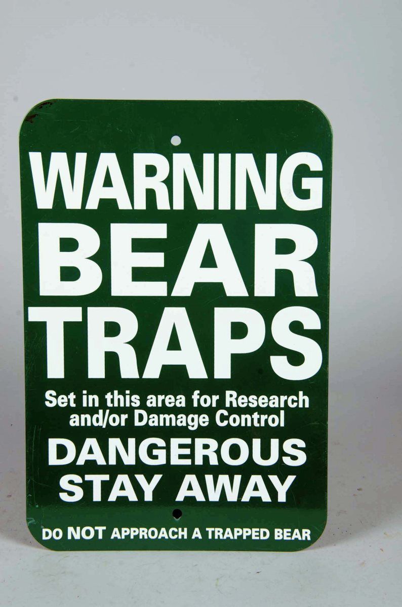 Including 1 - yellow "Warning disturbing beaver dams along this stream is a punishable offense" and 1 - green "Warning bear traps dangerous stay away". Condition (Excellent). Size 18" x 12"