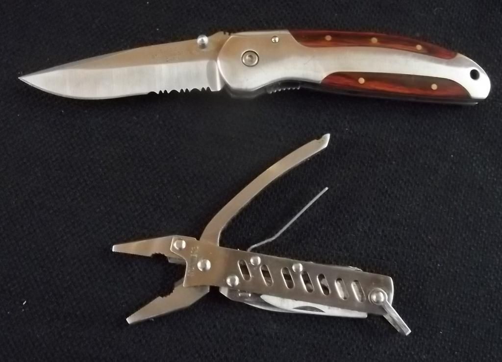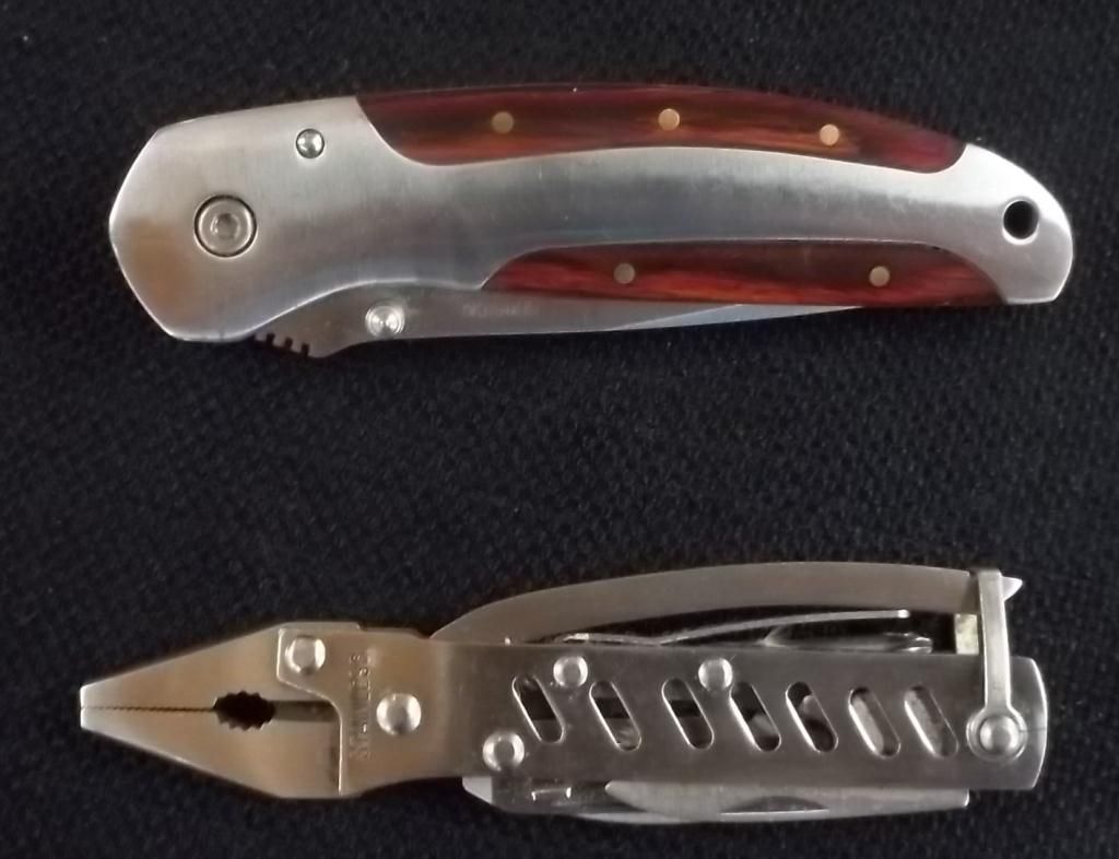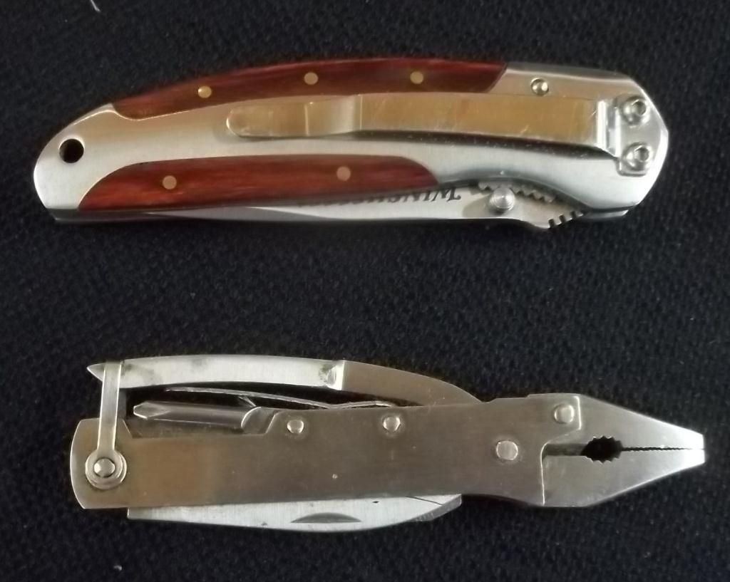 W/Stainless Steel Blade, & Wood Overlay Handle W/ Pocket Clip. Stainless Steel Multi Pocket Tool.