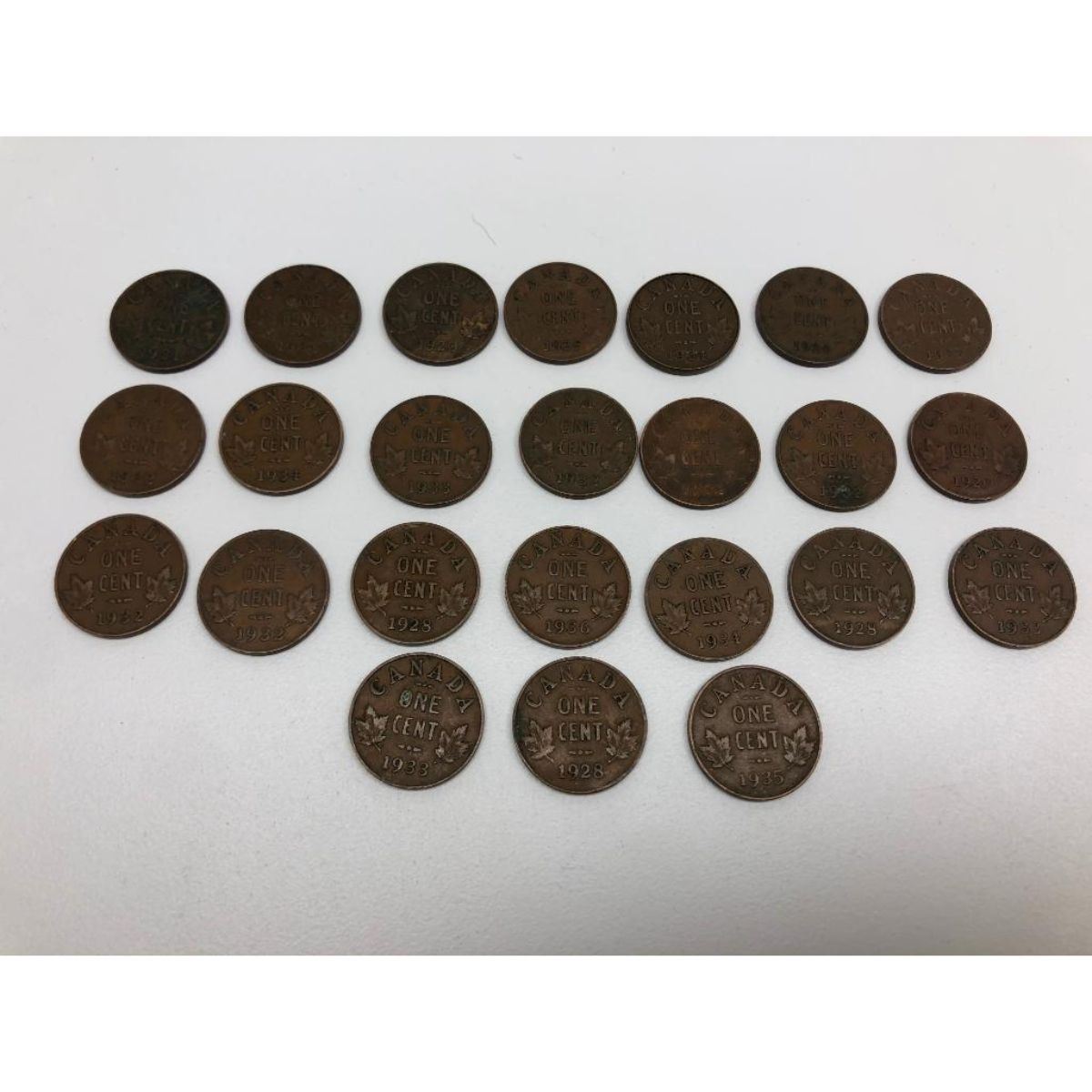 Lot Of 24 Canadian Pennies. Variety Coins Ranging From 1920-1936. View Photos For Further Details.