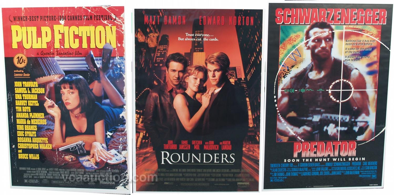 Lot Of 3 Authentic Movie Posters: 1 - Rounders 1998, 1 - Pulp Fiction 1994 & 1 - Predator 1987, all in excellent condition - each 27" x 40"