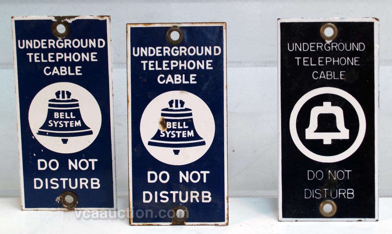 Lot Of 3 Bell System Porcelain Signs "Underground Telephone Cable DO NOT DISTURB" - each 3-1/2" x 7"