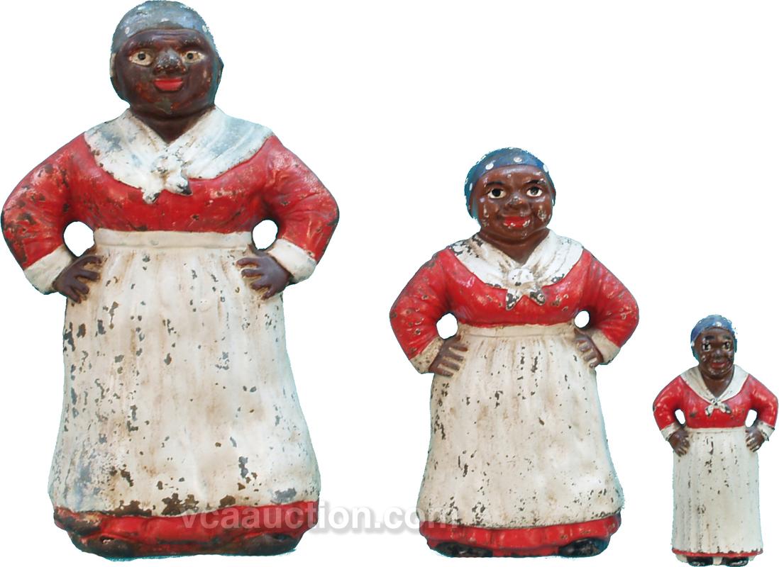 Lot Of 3 Cast-Iron "Mammy" Figures: 2 - statues 1 - 12" tall & 1 - 9" tall & 1 - bank (all are original and in original condition)