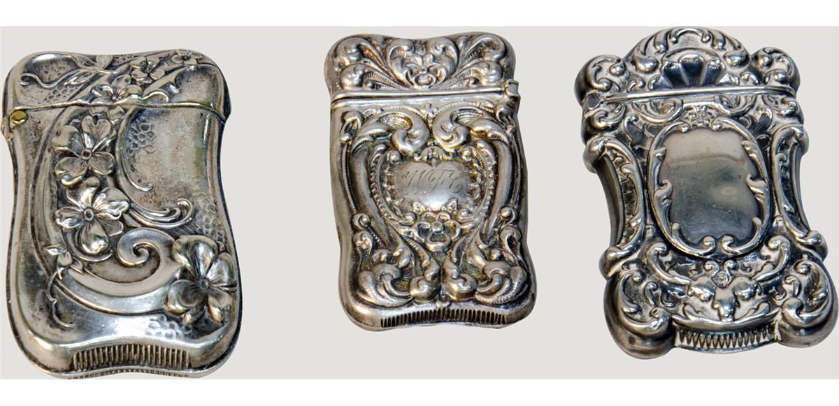 Lot Of 3 Fancy Embossed Silver Victorian Match Safes, c1890s: 2 - sterling silver & 1 - German silver