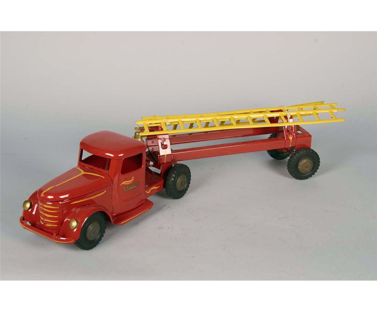 Including 1- Buddy L CFD Extension Ladder Fire truck with wood and metal ladders, 1 - Buddy L bed truck with wood fire ladders, 1 - Structo Ladder fire truck with 3 metal ladders, c1930's Condition (Very good). Size Up to 31" L.