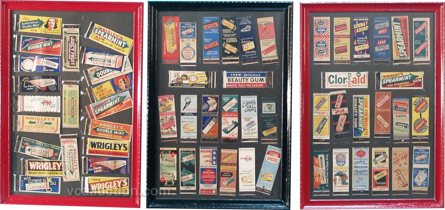 Lot Of 3 Framed Chewing Gum Advertisement Match Book Collection (total of 61 different match books) - each 13" x 19"