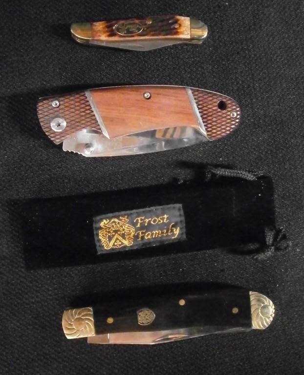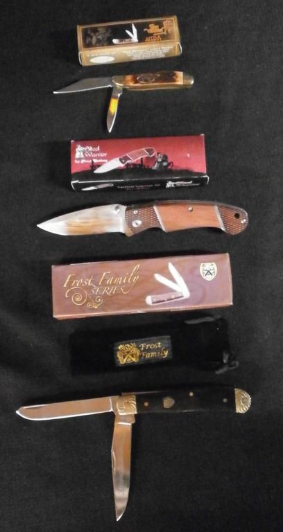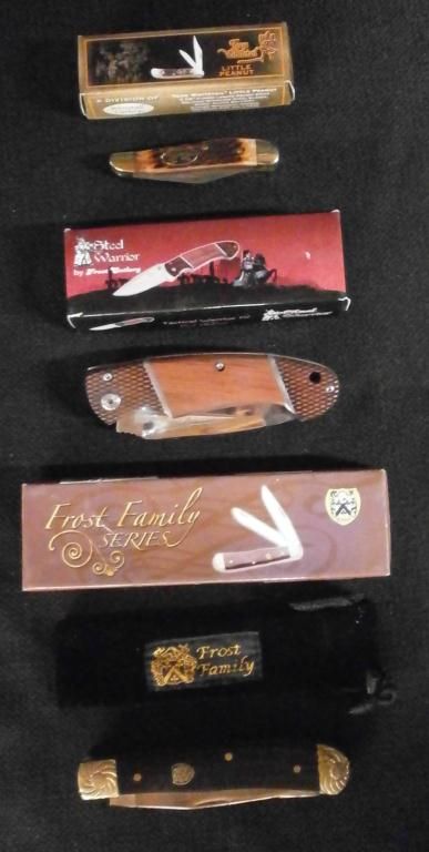 W/Polished Stainless Steel Blade, Nickel Silver Bolsters & Authentic Horn Handle W/Pouch. Tactical Warrior IV 4" Pocket Knife W/Stainless Steel Blade & Double Thumb Stud & Rosewood Handle & Pocket Clip. Little Peanut Whitetail 2 7/8"Pocket Knife W/Stainless Steel Blade, Nickel Silver Bolsters & Autumn Second Cut Handle.