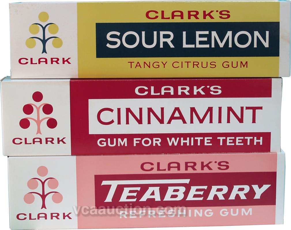 Lot Of 3 Oversized Clark's Cardboard Pack Of Gum Box Display Pieces: Cinnamint Gum, Teaberry Gum & Sour Lemon Gum - each 24" long