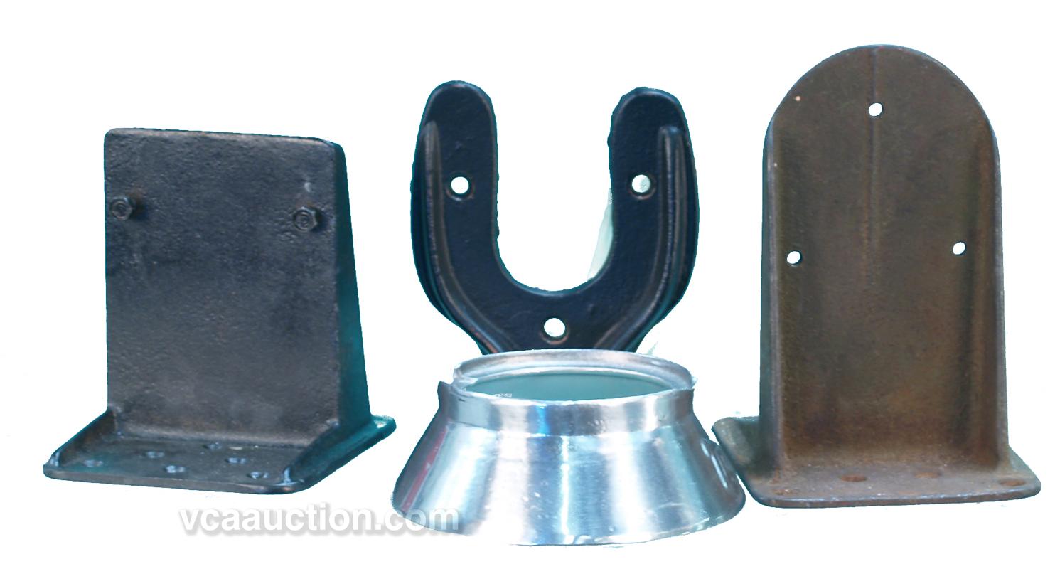 Lot Of 4 Chewing Gum Items: 1 - Northwestern embossed aluminum gum globe filling funnel, 1 - Columbus cast-iron wall bracket, 1 - Northwestern 33 cast-iron wall bracket & 1 - Universal cast-iron wall bracket