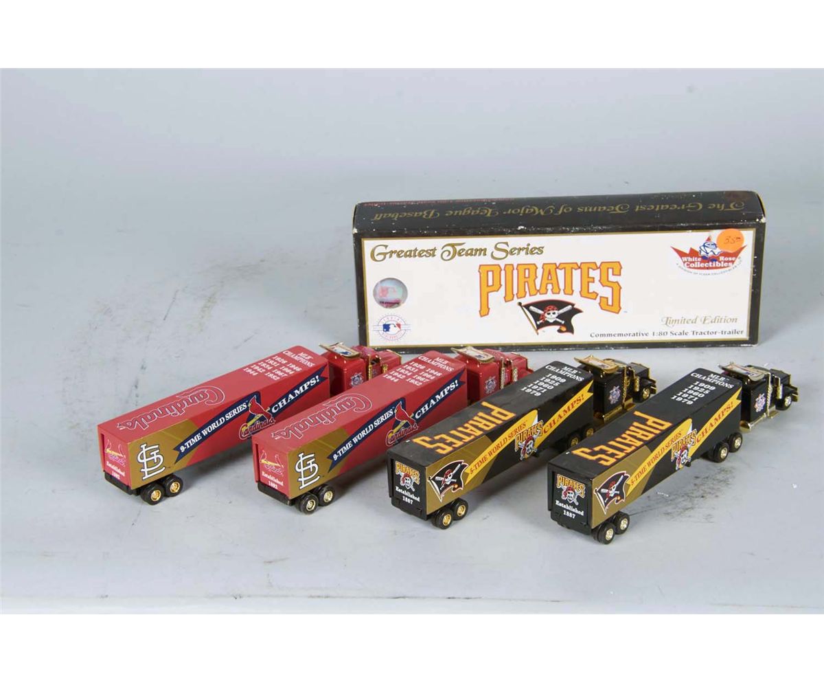 1:80 Scale, White Rose Collectibles Commemorative Great Team Series In Boxes, Includes 2 Pirates & 2 Cardinals Trucks Condition Excellent Size Boxes 11-1/2" x 2" x 4"