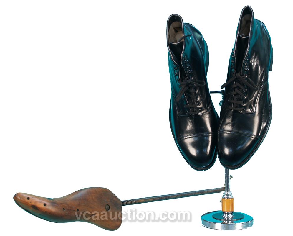 Lot Of 4 Items: 1 - antique wood & metal shoe stretcher, pair of Nunn-Bush Ankle Fashioned shoes w/ metal shoe stand