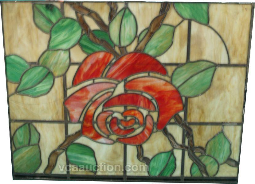 Lot Of 4 Old Stained Glass Windows, 2 - w/ roses, each - 45" x 36"