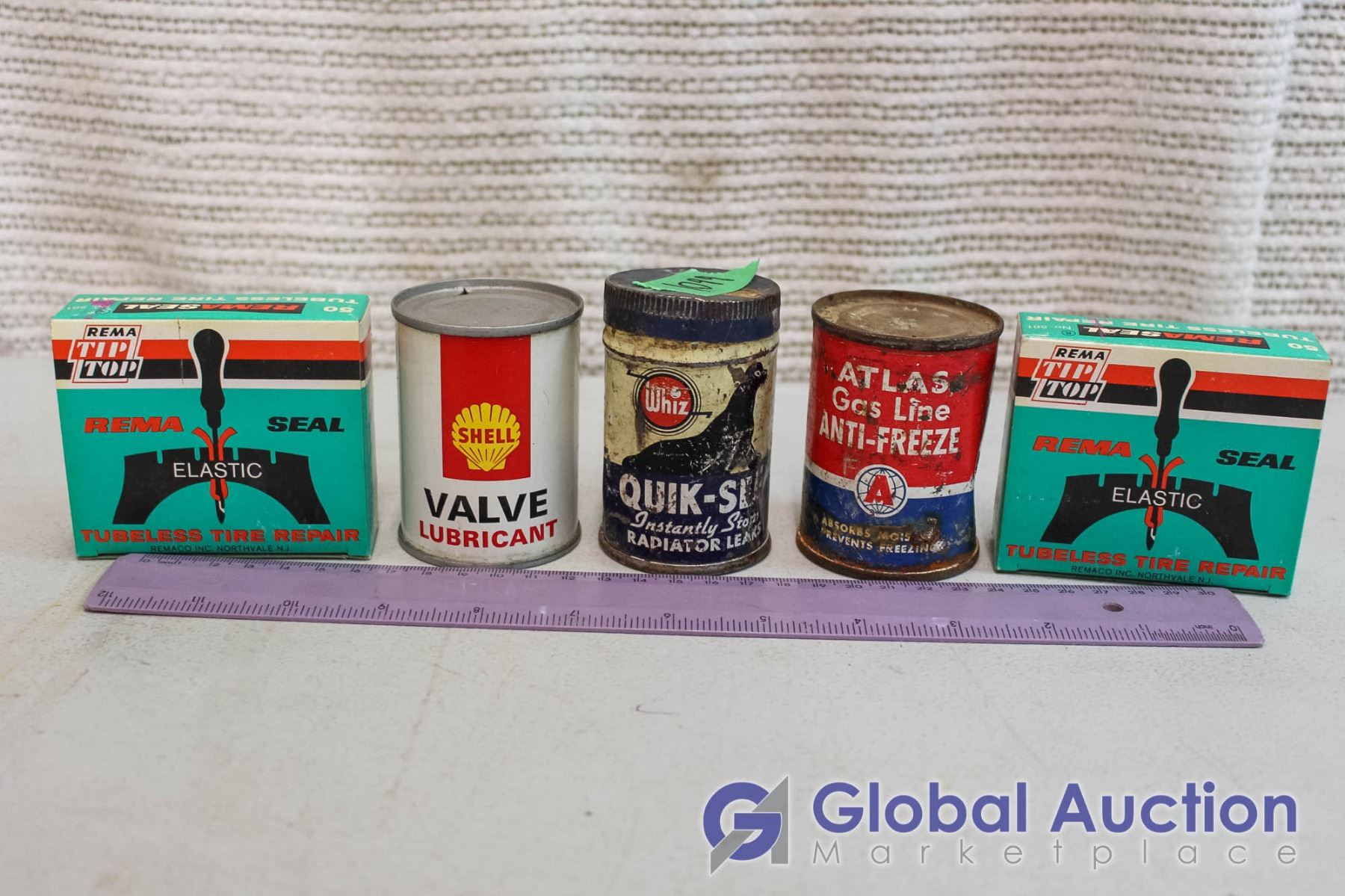 Lot Of 4 Oz Tins With Tire Plugs (Whiz, Shell, Atlas)
