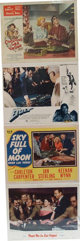 Lot Of 4 Roulette Gambling Single Sheet Authentic Movie Posters: 1 - That Man Bolt 1973, 1 - Sky Full Of Moon Over Las Vegas 1952, 1 - Meet Me In Las Vegas 1956 & 1 - Crashing Las Vegas 1956, in good condition - each 14" x 11"