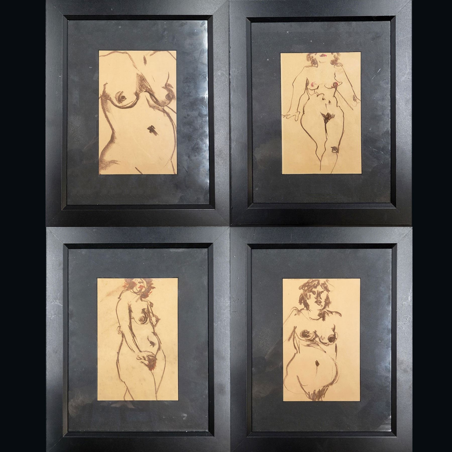 Lot Of 4 Unsigned Charcoal Gesture Figure Drawings. Measures approximately 13" x 16" each, framed.